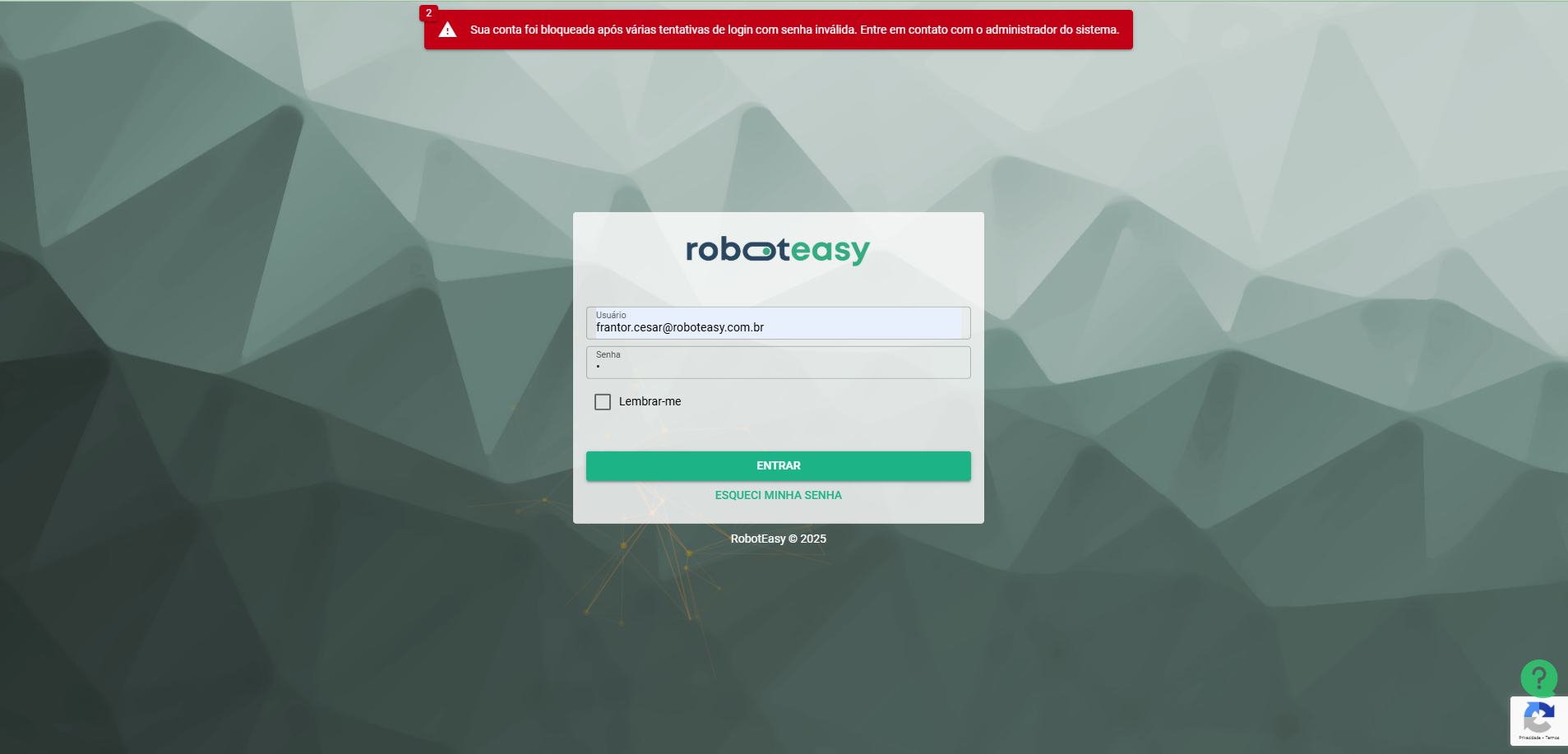 <figure><img src="https://2928556787-files.gitbook.io/~/files/v0/b/gitbook-x-prod.appspot.com/o/spaces%2FizIEL0wcsfVfXd8Po0RW%2Fuploads%2F4I1T1YlYtYveiJBaeUfd%2Fimage-20250205-141527.png?alt=media&#x26;token=696f9d92-ac90-46d3-a93b-7c82a35e0a59" alt=""><figcaption><p>Alerta de bloqueio de senha</p></figcaption></figure>