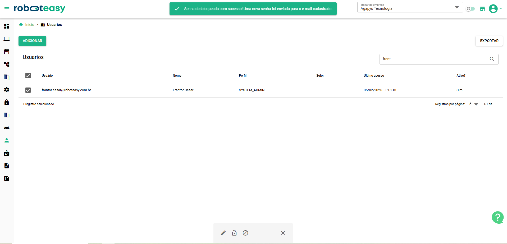 <figure><img src="https://2928556787-files.gitbook.io/~/files/v0/b/gitbook-x-prod.appspot.com/o/spaces%2FizIEL0wcsfVfXd8Po0RW%2Fuploads%2FzKxt7cqjWbiknAhcq0Pq%2Fimage-20250205-141929.png?alt=media&#x26;token=3dc32e26-3136-48f7-9dca-6389b7a0d123" alt=""><figcaption><p>Notificação de senha desbloquada para administrador</p></figcaption></figure>